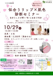 『リリオス応援企画』から、今回は色彩講師でパーソナルカラーアナリスト、一級色彩コーディネーターの松井優香理さんを講師にお迎えして始まりました。